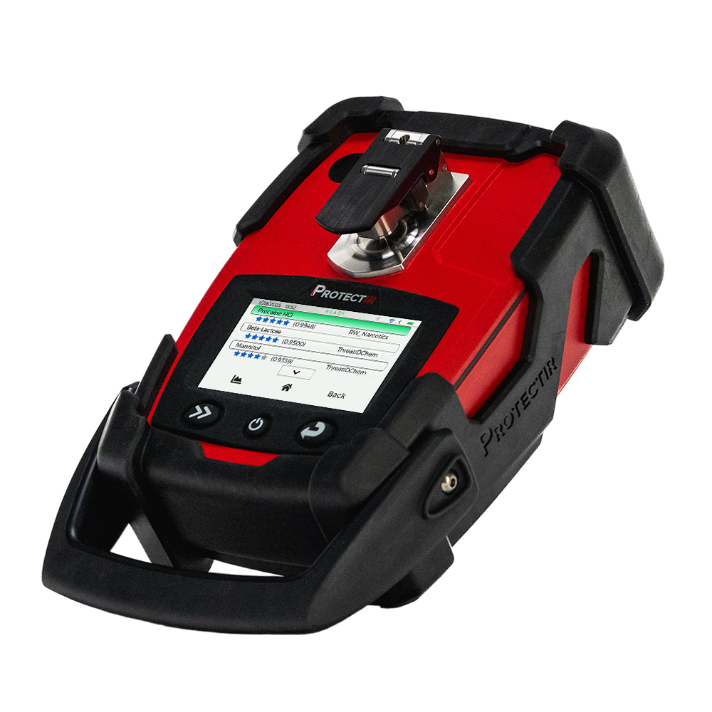 En ruggad och bärbar detektor som låter dig identifiera tusentals olika kemiska hot på några sekunder. Placera en bit av ett fast ämne eller en liten mängd vätska på diamanten så sköter FTIR-tekniken (Fourier Transform Infared) identifieringen. Instrumentet kan användas i tuffa förhållanden av operatörer i skyddsdräkt och handskar. Resultatet presenteras klart och tydligt på skärmen.